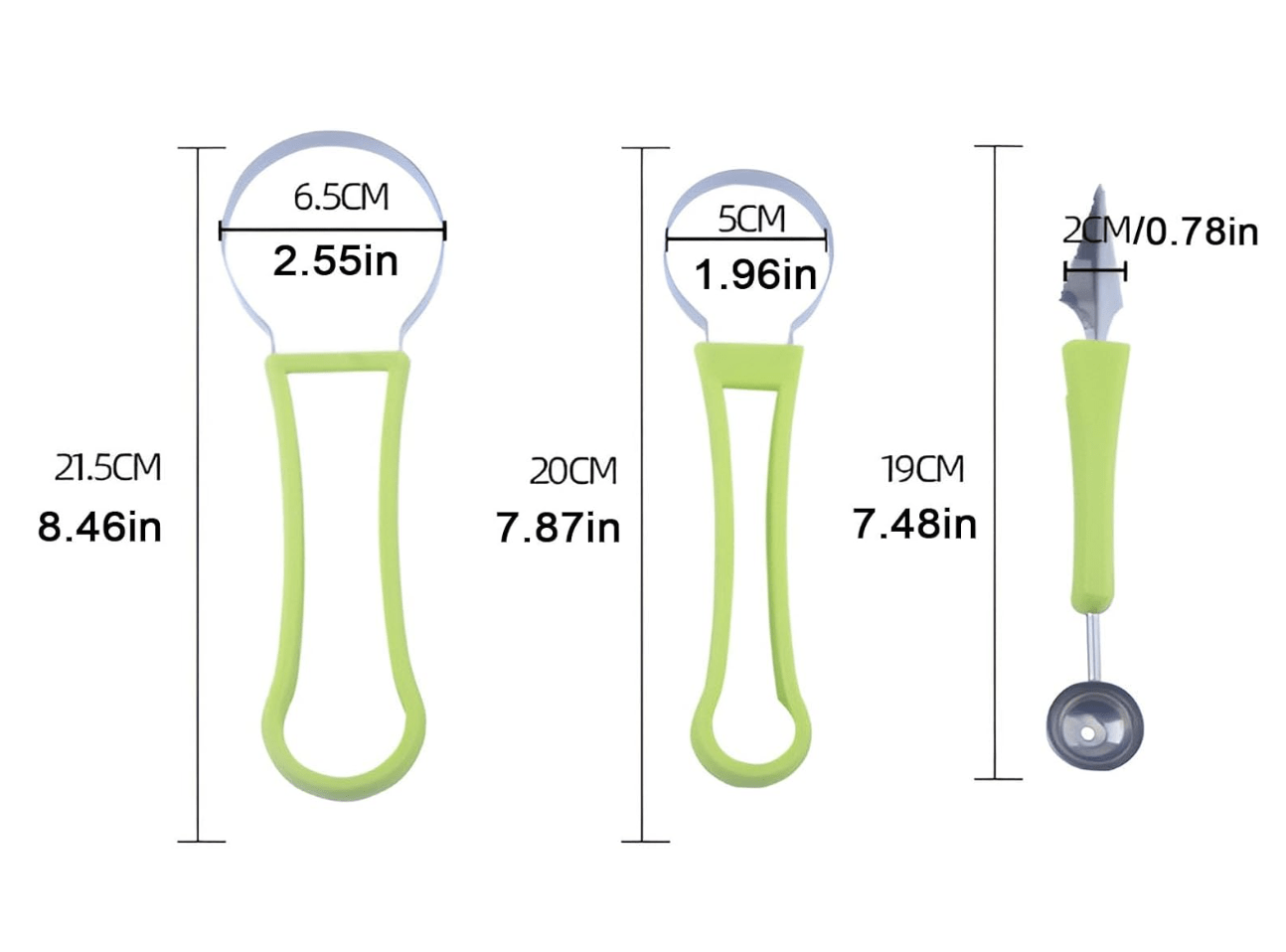 - <4 In 1 Multifunctional Fruit Tool> : The fruit tool is designed in one piece and can be easily divided into 3 fruit spoon tools. Fruit spoon kitchen tool set is suitable for watermelon, cantaloupe, dragon fruit, kiwi fruit, etc.