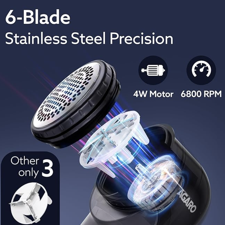 AGARO 2417 Lint Remover, Electric Fabric Shaver, Rechargeable, Stainless Steel Blades, Portable, Multi-Functional Fuzz Remover from Woollen Sweaters, Coat, Blankets, Jackets, Carpets, Burr Remover