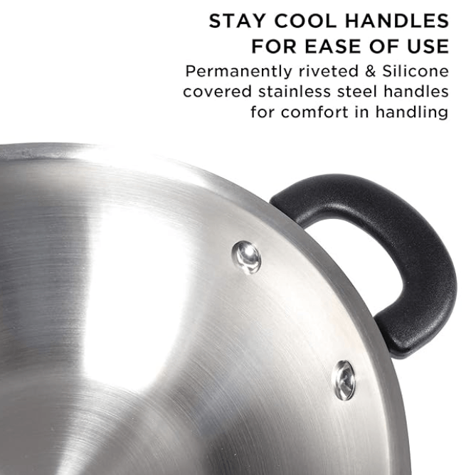 Meyer Centennial Nickel Free Kadai | Steel Kadhai for Deep Frying | Stainless Steel Cookware | Deep Kadai | kadai with lid for Cooking | Steel kadhai Induction Base, 22cm, Blue Diamond