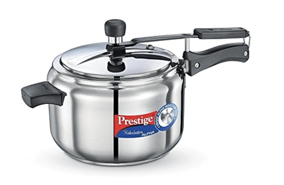Prestige 5 Litres Nakshatra Alpha Induction Base Inner Lid Stainless Steel Pressure Cooker |Silver | Metallic Safety Plug | Durable Handles | Pressure Regulator