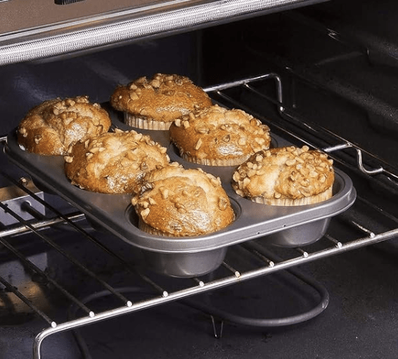 Reusable Non-Stick Carbon Steel Biscuit, Brownie, Dessert,Mini loaf, Cupcake Muffin Mould Tray pan for Microwave Oven for Home Baking Tools(Black/1 pcs) (6 Cavity Small)