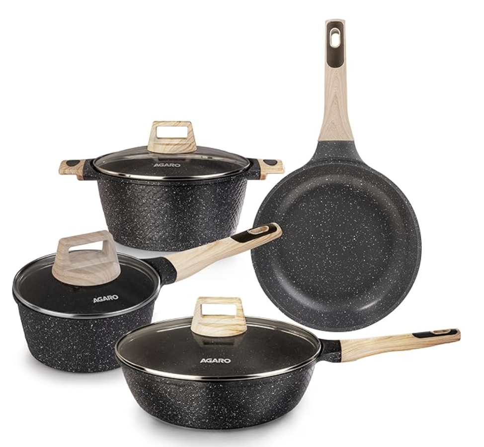AGARO इंपीरियल ग्रेनाइट नॉन-स्टिक कुकवेयर सेट, 4 पीस: 24cm फ्राई पैन और कैसरोल, 16cm सॉस पैन, 28cm डीप फ्राई पैन ढक्कन के साथ, कास्ट एल्युमीनियम, गैस और इंडक्शन कम्पैटिबल