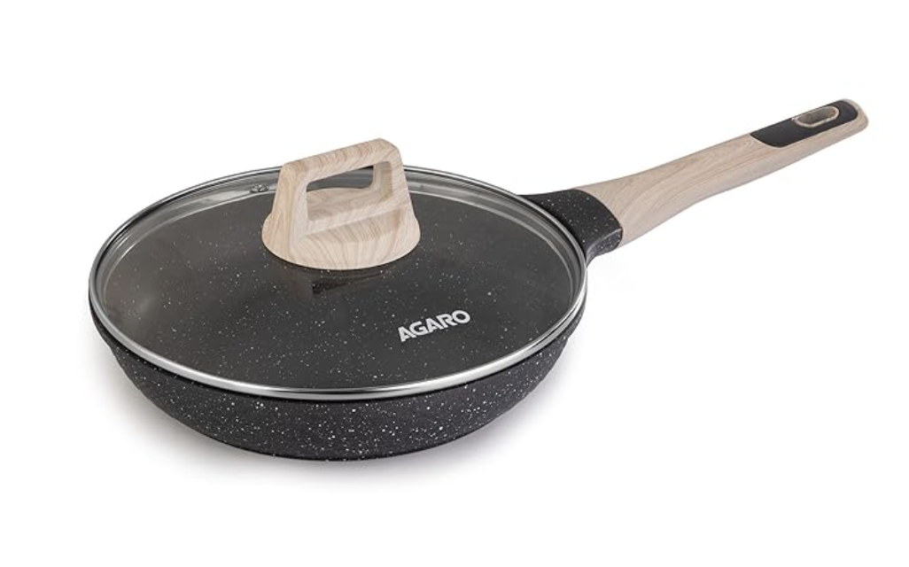 AGARO इम्पीरियल ग्रेनाइट नॉन-स्टिक फ्राईपैन ग्लास लिड के साथ, 3 लीटर / 28 सेमी, कास्ट एल्युमीनियम बॉडी, ऑमलेट एग पैन, फिश फ्राई पैन, गैस और इंडक्शन कम्पैटिबल, गहरा ग्रे