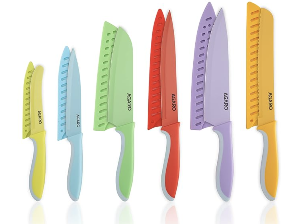 AGARO रॉयल 6 पीस रंगीन रसोई चाकू सेट कवर के साथ, उच्च कार्बन स्टेनलेस स्टील पेशेवर शेफ चाकू I ब्रेड चाकू I सैंटोकू चाकू I उपयोगिता चाकू I मक्खन चाकू I स्लाइसिंग चाकू सेट रसोई के लिए (मल्टी कलर)।