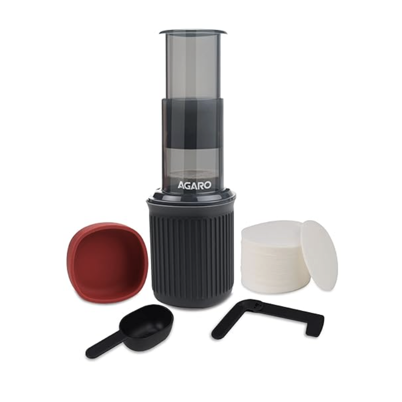 AGARO रॉयल मैनुअल प्रेस कॉफ़ी एस्प्रेसो मेकर ट्रैवल कप के साथ, ट्रैवल कॉफ़ी मेकर, पोर्टेबल, बोनस 500 पेपर फ़िल्टर