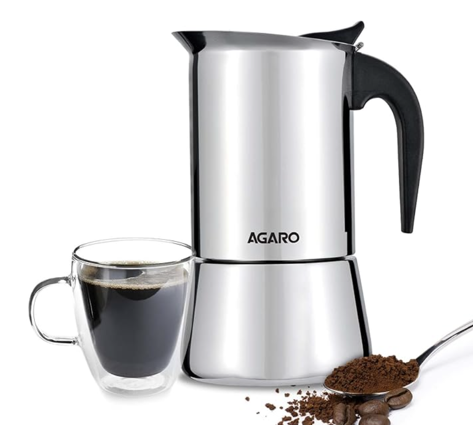 AGARO रॉयल मोका पॉट, स्टोवटॉप और इंडक्शन कुकटॉप क्लासिक एस्प्रेसो और कॉफ़ी मेकर, 200 मिली, स्टेनलेस स्टील निर्मित, इटैलियन स्टाइल मोका, क्यूबन कैफ़े ब्रूइंग, सिल्वर