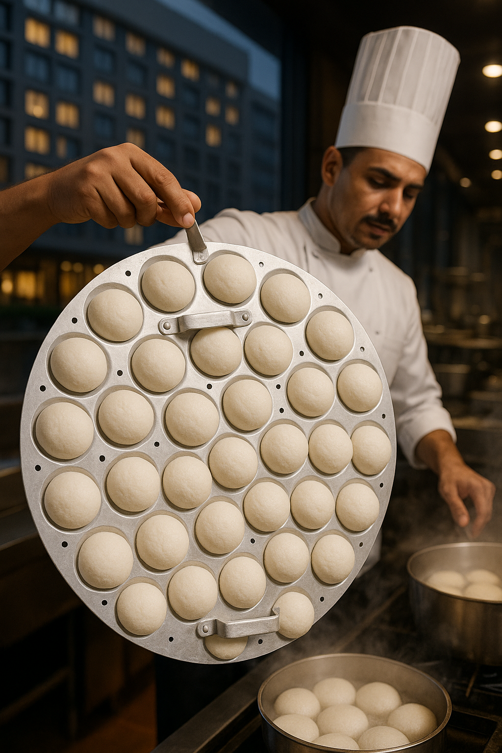 Velanstore.com पर विशेष रूप से उपलब्ध इस व्यावसायिक स्तर के इडली स्टीमर प्लेट से बड़ी मात्रा में उत्तम मिनी इडली बनाएं। पेशेवर रसोई, कैटरिंग सेवाओं और होटलों के लिए डिज़ाइन किया गया, यह मज़बूत एल्युमिनियम स्टीमर हर बार समान रूप से भाप देने और नरम, फूली हुई इडली बनाने की गारंटी देता है।