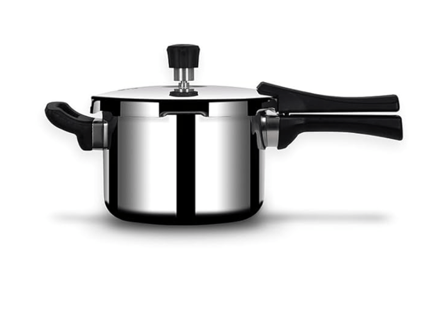 ARTTDINOX स्टेलर स्टेनलेस स्टील ट्रिपली 5 लीटर मिरर फ़िनिश प्रेशर कुकर गैस्केट के साथ | रिवेटलेस हैंडल | इंडक्शन और गैस बेस | 7 साल की वारंटी | जिंदल स्टेनलेस