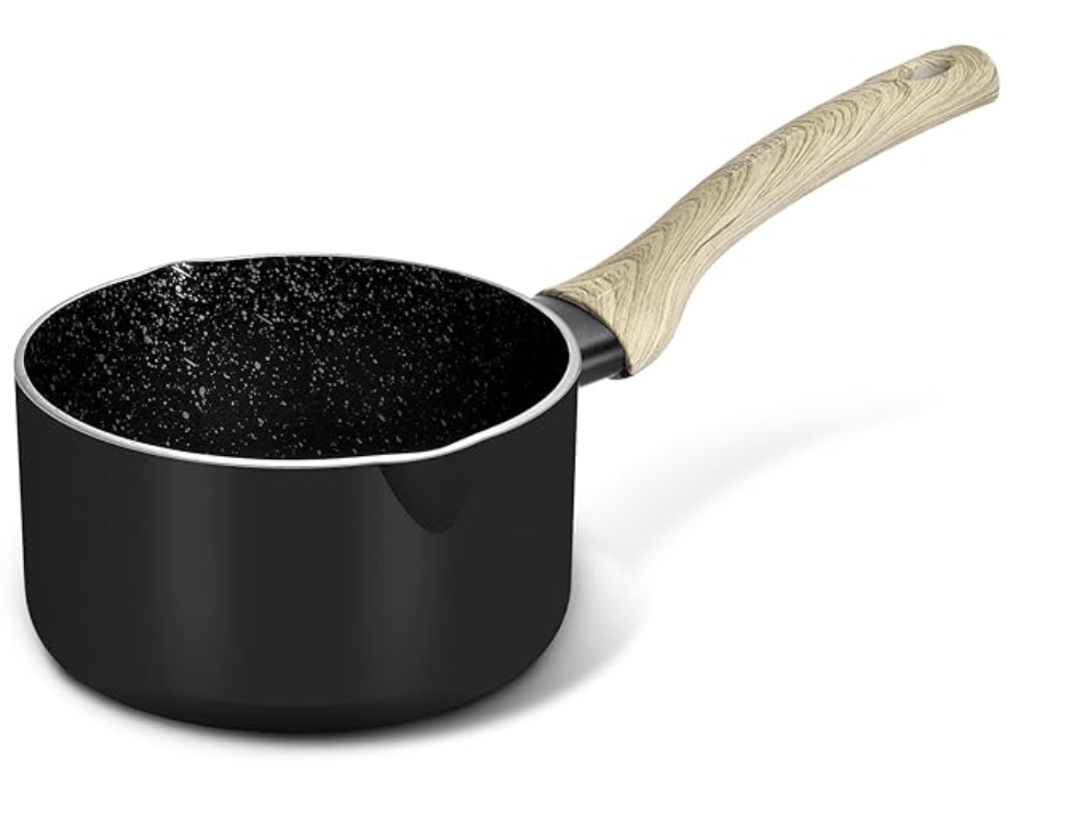 बर्गनर बेलिनी प्लस ऑरा 5-लेयर नॉन-स्टिक 16 सेमी सॉस पैन, 1.8 लीटर सॉस पैन सॉफ्ट टच वुडन फ़िनिश हैंडल के साथ, खाद्य सुरक्षित, PFOA मुक्त, 3.2 मिमी मोटाई, इंडक्शन बॉटम, 1 साल की वारंटी, काला