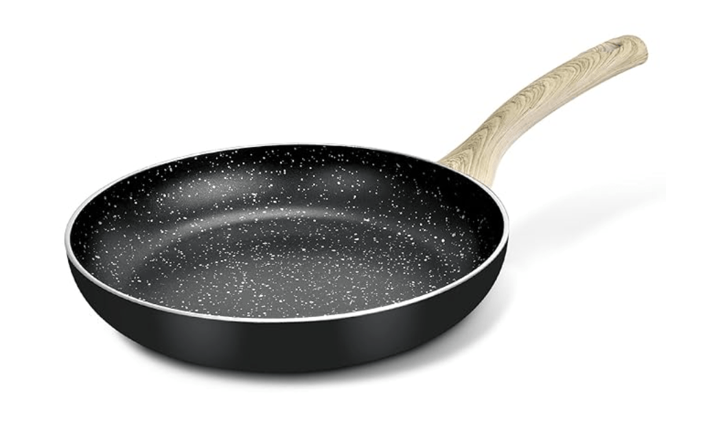 बर्गनर बेलिनी प्लस ऑरा 5-लेयर नॉन-स्टिक 18 सेमी फ्राईपैन, 1 लीटर फ्राइंग पैन सॉफ्ट टच वुडन फ़िनिश हैंडल के साथ, खाद्य सुरक्षित (PFOA मुक्त), मोटाई 3.2 मिमी, इंडक्शन बॉटम - काला