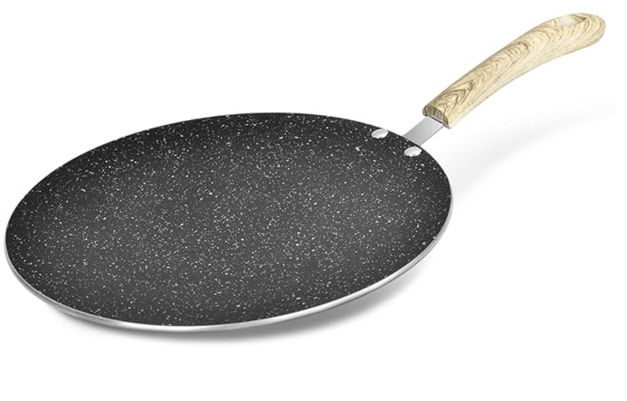 बर्गनर बेलिनी प्लस ऑरा 5-लेयर नॉन-स्टिक 25 सेमी रोटी तवा, सॉफ्ट टच वुडन फ़िनिश हैंडल के साथ अवतल तवा, खाद्य सुरक्षित, PFOA मुक्त, टिकाऊ, 4 मिमी मोटाई, बर्गनर द्वारा 1-वर्ष की वारंटी, काला