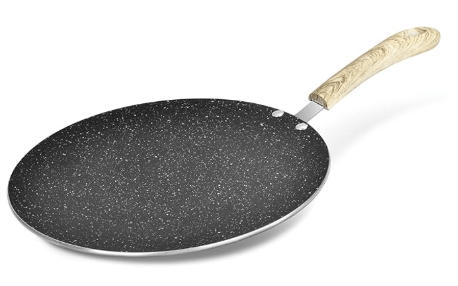 बर्गनर बेलिनी प्लस ऑरा 5-लेयर नॉन-स्टिक 28 सेमी फ्लैट तवा, सॉफ्ट टच वुडन फ़िनिश हैंडल वाला तवा, भोजन के लिए सुरक्षित, PFOA मुक्त, 4 मिमी मोटाई, साफ़ करने में आसान, इंडक्शन बॉटम, 1 साल की वारंटी, काला