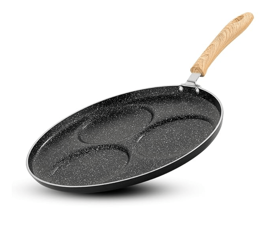 बर्गनर बेलिनी प्लस ऑरा 5-लेयर नॉन-स्टिक 3 पिट उत्तपम तवा, लकड़ी की फिनिश, सॉफ्ट टच हैंडल के साथ, 3 कैविटी पैनकेक मेकर, कम से कम तेल में खाना पकाना, PFOA मुक्त, टिकाऊ - गैस स्टोव के लिए तैयार