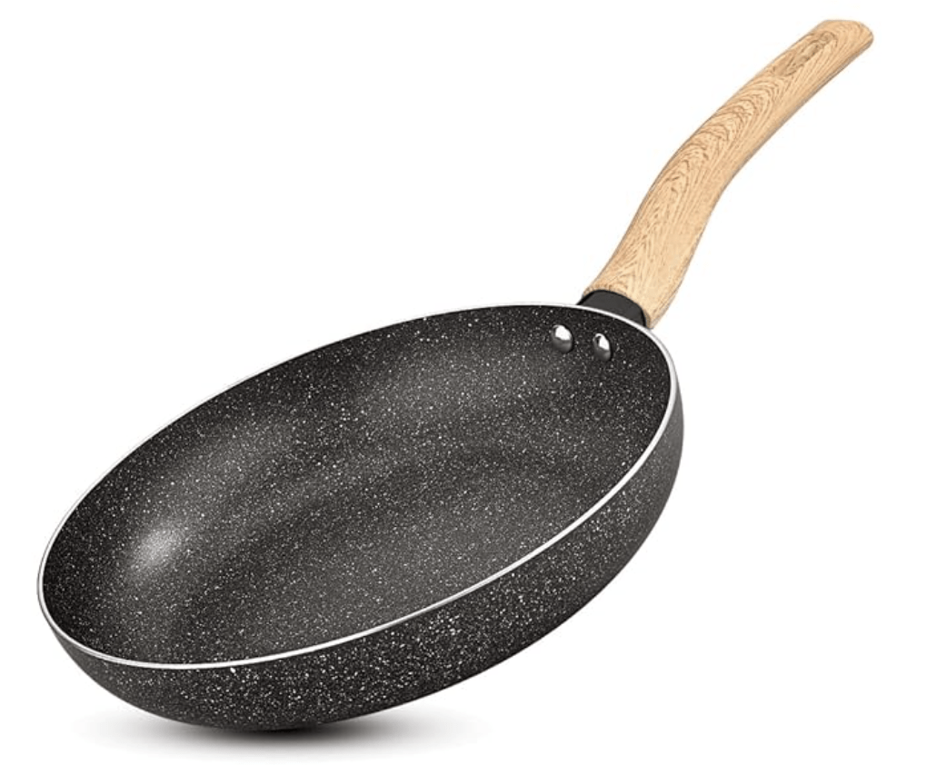 बर्गनर अर्थ ब्लैक नॉन-स्टिक 20 सेमी फ्राईपैन, 1.4 लीटर फ्राइंग पैन, लकड़ी की फिनिश, सॉफ्ट टच हैंडल के साथ, 2.5 मिमी मोटाई, कम तेल की खपत, समान ताप वितरण, इंडक्शन बॉटम और गैस रेडी - काला