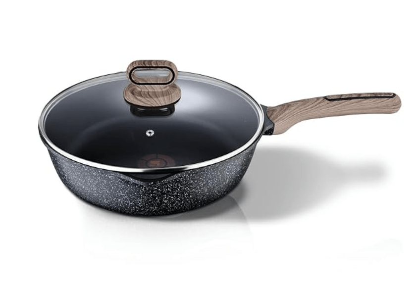 बर्गनर अल्टीमेट नॉन-स्टिक डीप फ्राईपैन ग्लास लिड के साथ 28 सेमी, 3.2 लीटर, हीटडॉट टेक्नोलॉजी और इंडक्शन बेस, भोजन सुरक्षित, ग्रे