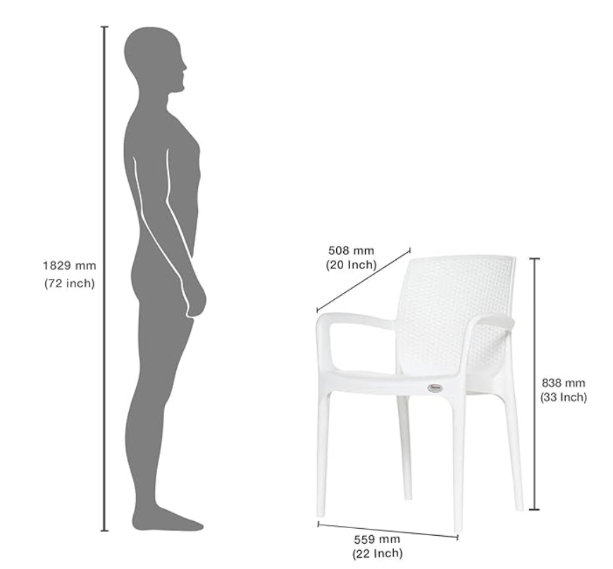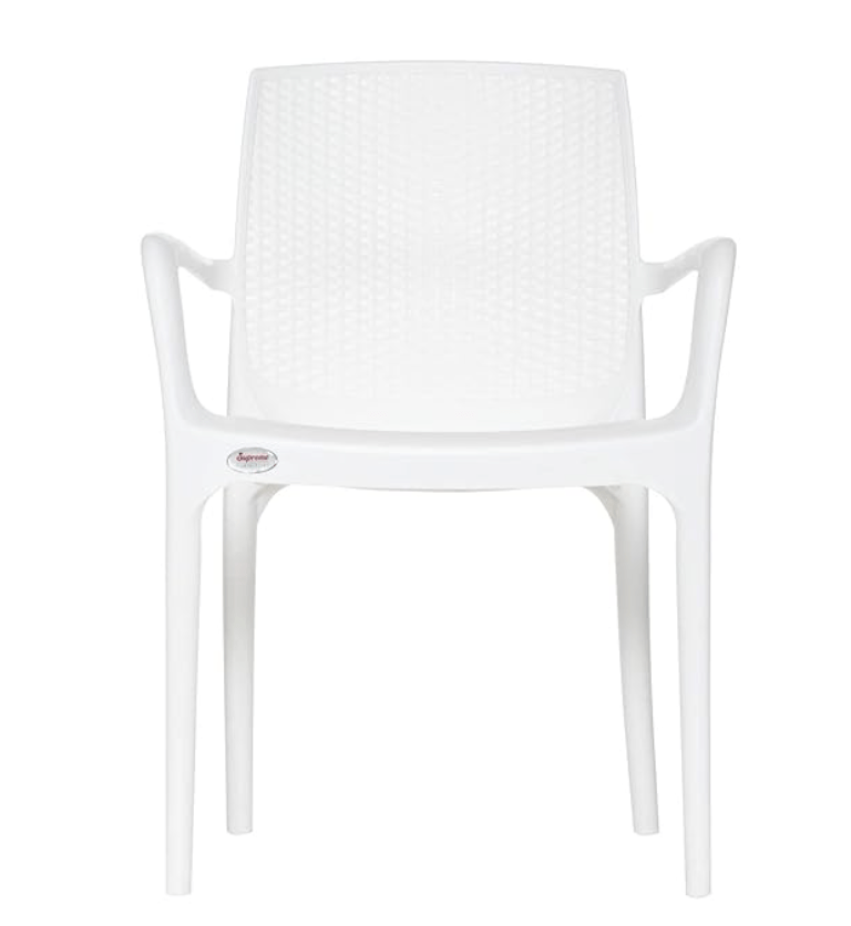बिनानी सुप्रीम टेक्सास हेवी स्टैकेबल आर्मचेयर घर और ऑफिस के लिए (सफ़ेद, 2 का सेट)