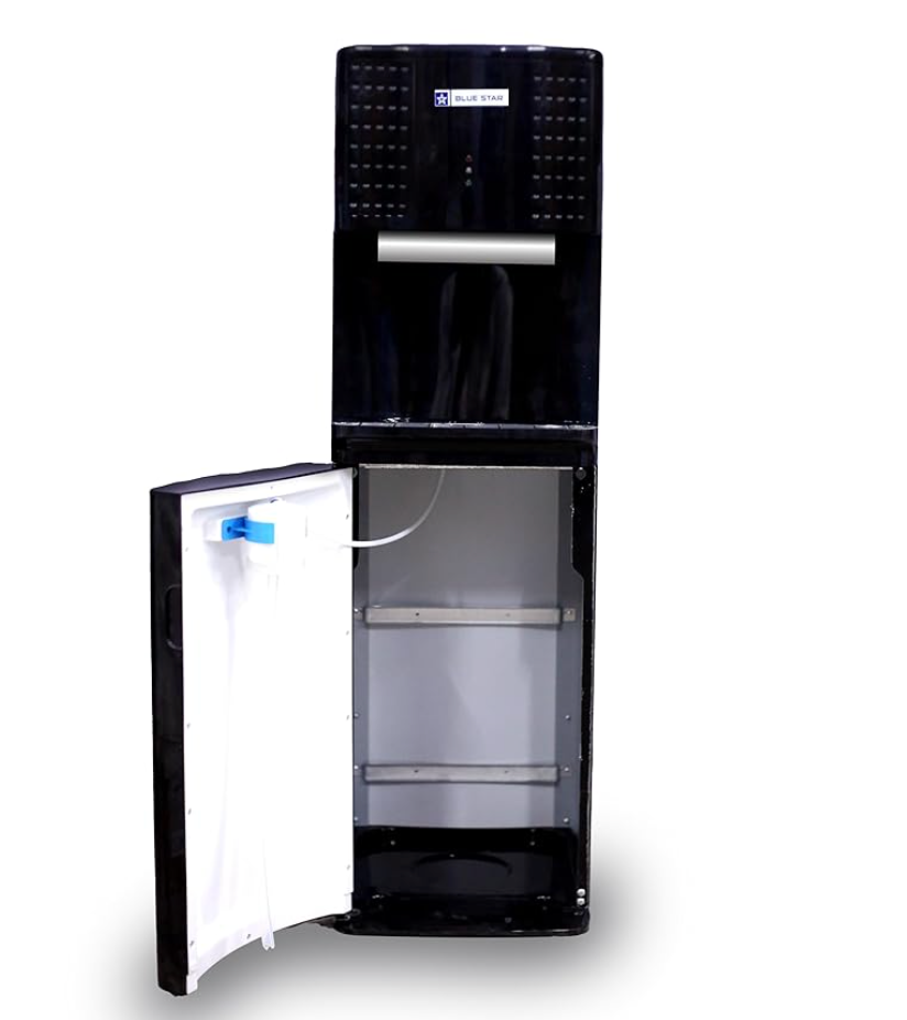 ब्लू स्टार BL1HPCGA बॉटम लोडिंग वाटर डिस्पेंसर | 3 नल, गर्म, ठंडा और सामान्य तापमान का पानी, एलईडी डिस्प्ले, चाइल्ड लॉक (काला)