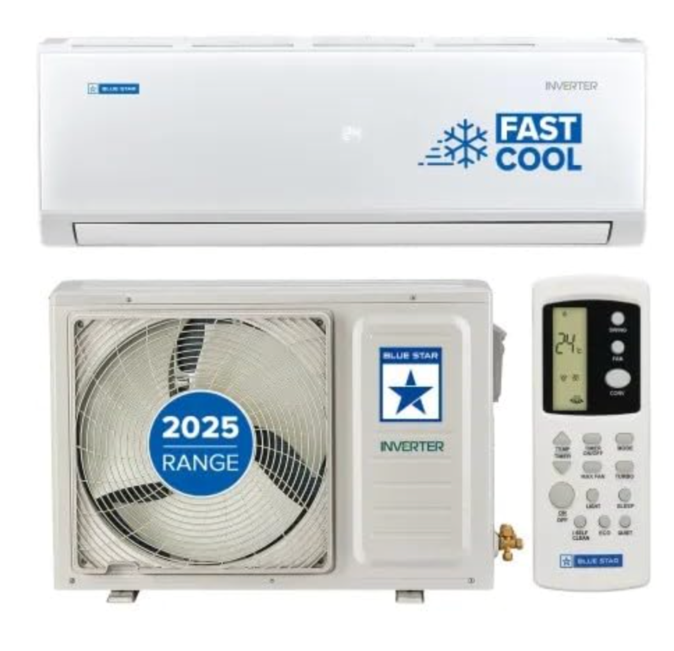 ब्लू स्टार 1.5 टन 3 स्टार इन्वर्टर स्प्लिट एसी | 5 इन 1 कन्वर्टिबल | आई-सेल्फ क्लीन | 100% कॉपर | पीएम 2.5 फिल्टर | टर्बो कूल 2025 मॉडल