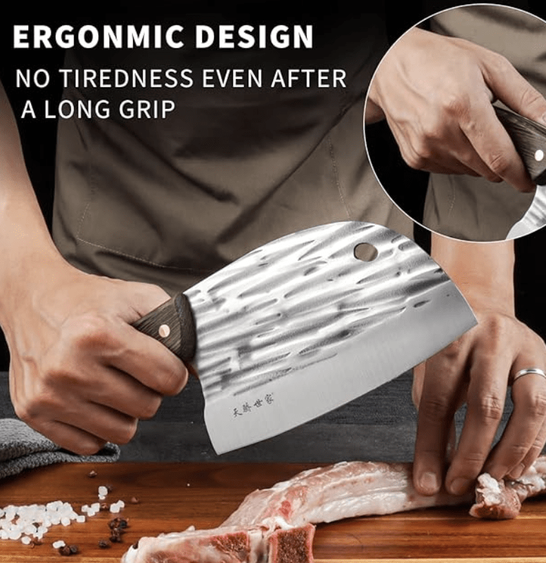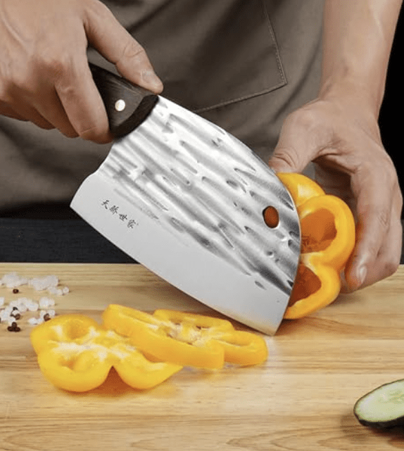 - 【हस्तनिर्मित शिल्प】चाकू का शरीर हाथ से गढ़ा गया है। स्टील की संरचना मज़बूत, कठोर और मज़बूत है, जिससे चाकू तेज़ और टिकाऊ बनता है। काटने वाले चाकू की सतह पर हाथ से गढ़ी गई, प्राकृतिक रूप से अवतल बनावट है जो सामग्री के चिपकने को प्रभावी ढंग से कम करती है और एक चिकनी कटाई सुनिश्चित करती है।