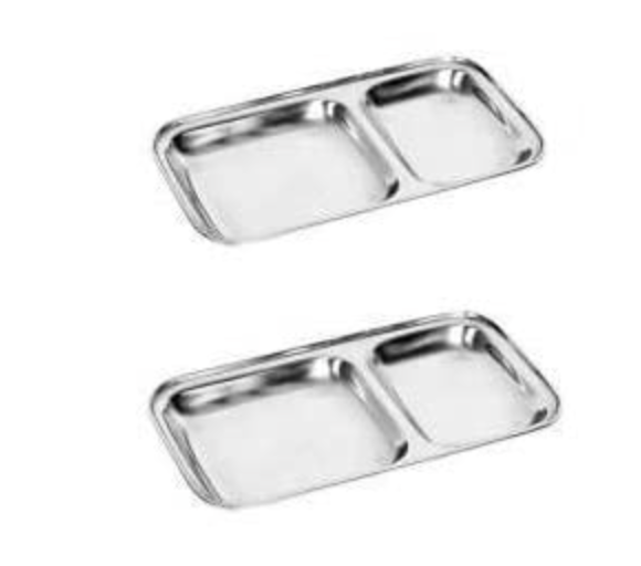 वेलन स्टोर स्टेनलेस स्टील 2 इन 1 दो कंपार्टमेंट नाश्ता/स्नैक प्लेट - 2 का सेट