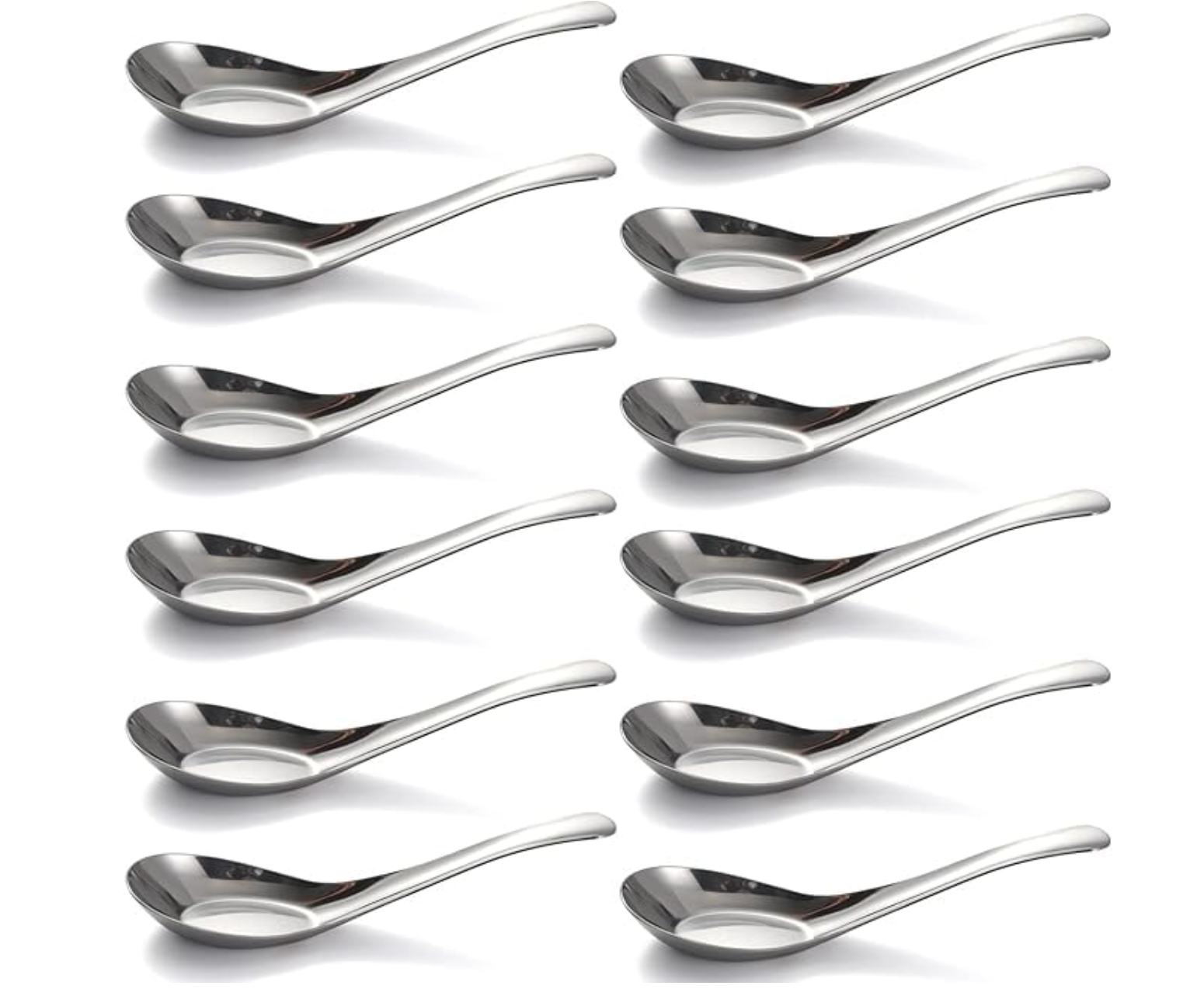वेलन स्टोर स्टेनलेस स्टील डिनर चम्मचों का 12 चम्मचों का सेट, चीनी सूप चम्मच, मिरर पॉलिश किए हुए एशियाई सूप चम्मच, शोरबा, मिठाई, अनाज, थाई, मिसो और रामेन के लिए उपयुक्त।