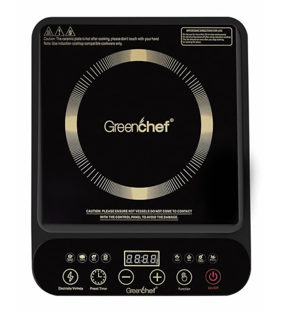 ग्रीनशेफ डाइस 2000 वाट एलईडी टच पैनल, टाइमर और पावर खपत संकेतक इंडक्शन कुकटॉप