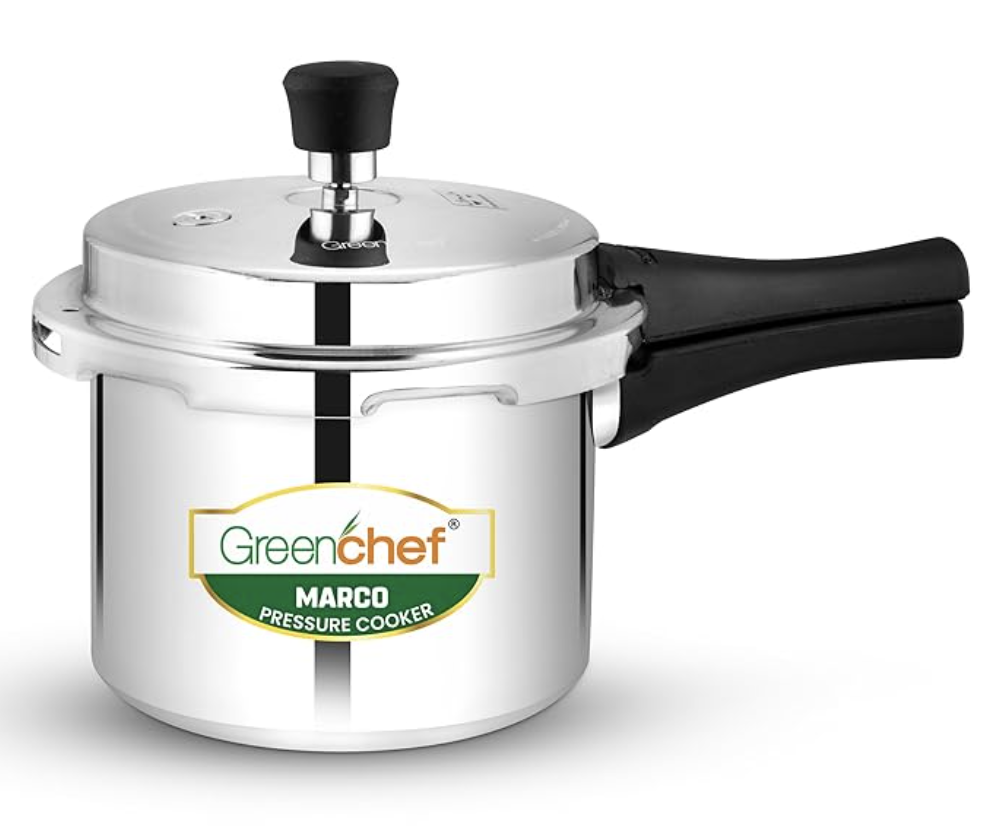 ग्रीनशेफ मार्को आउटर लिड कॉम्बो 5 लीटर, 3 लीटर और 2 लीटर पैन - आईएसआई प्रमाणित नॉन-इंडक्शन बेस एल्युमीनियम आउटर लिड प्रेशर कुकर