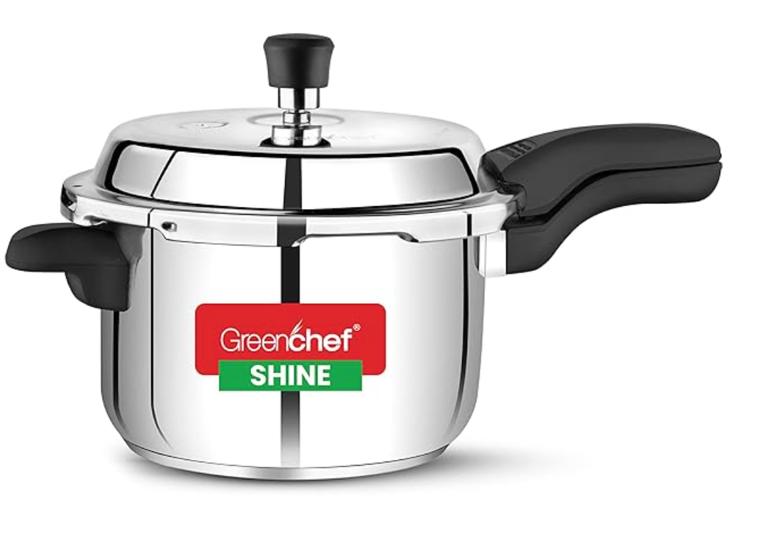 ग्रीनशेफ शाइन बाहरी ढक्कन स्टेनलेस स्टील प्रेशर कुकर 5 लीटर इंडक्शन और गैस स्टोव संगत - आईएसआई प्रमाणित