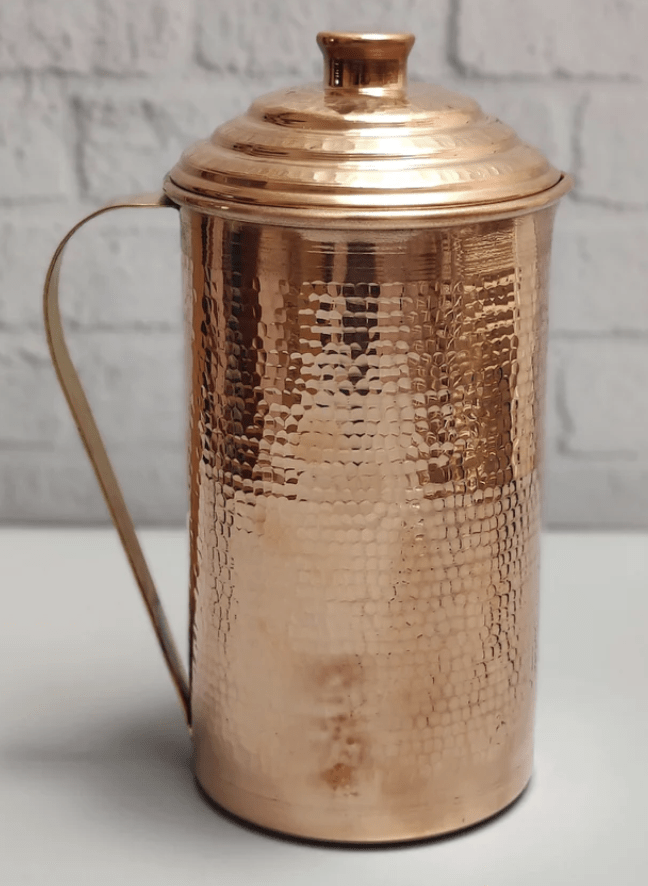 हमारे उत्कृष्ट, हस्तनिर्मित तांबे के जग के साथ महाराष्ट्र के कुशल कारीगरों की विरासत का अनुभव करें। शिवाजी महाराज के समय से प्रेरित, प्रत्येक जग पीढ़ियों से चली आ रही कलात्मकता और शिल्प कौशल का प्रतीक है। तांबे के जग के साथ चांदी का उपयोग करके जोड़े गए मजबूत पीतल के हैंडल से पूरित जटिल डिजाइन, इस क्षेत्र की समृद्ध विरासत का प्रमाण है। यह जग पानी रखने और पीने के लिए पारंपरिक तांबे के लोटे/सोम्बू का आधुनिक रूपांतर है। इस उत्कृष्ट कृति से घूंट भरते हुए तांबे के बर्तन से पानी पीने के स्वास्थ्य लाभों का आनंद लें। इसके प्राकृतिक रोगाणुरोधी गुण और पानी की ठंडक को बनाए रखने की क्षमता हर पेय को ताज़ा और स्फूर्तिदायक बनाती है। परंपरा को अपनाएं, अपने स्वास्थ्य को बेहतर बनाएं, और हमारे हस्तनिर्मित तांबे के जग के साथ महाराष्ट्र की कलात्मकता का जश्न मनाएं। शैली और कार्यक्षमता के सही मिश्रण का आनंद लेते हुए अपने घर में इतिहास का स्पर्श जोड़ें।