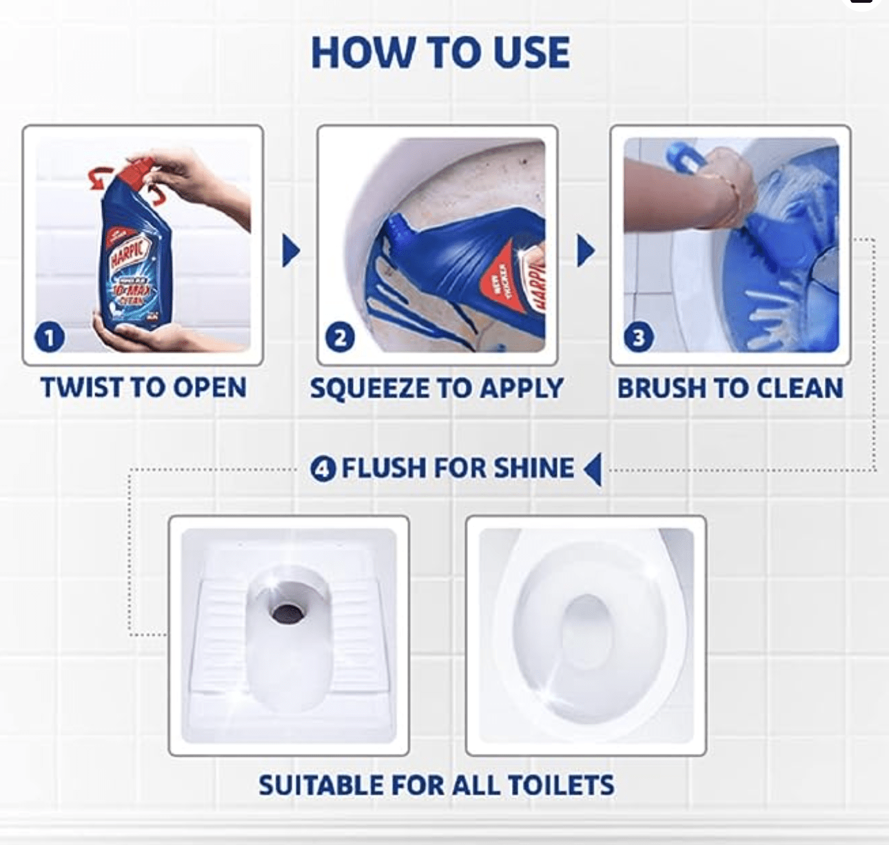 हार्पिक 1 लीटर - ओरिजिनल, कीटाणुनाशक टॉयलेट क्लीनर लिक्विड | टॉयलेट बाउल के लिए उपयुक्त