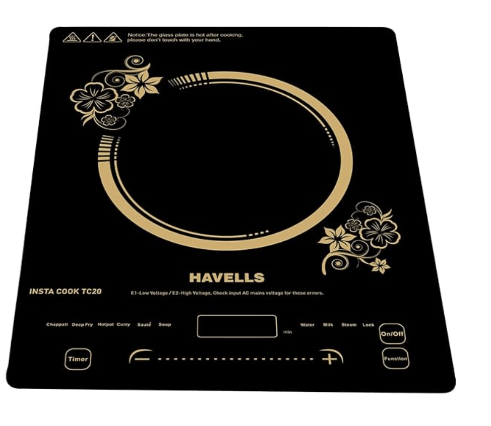 हैवेल्स इंडक्शन ग्लास सिरेमिक कुकटॉप TC20, 9 कुकिंग मोड्स के साथ, 2000 वाट, 3 साल की कॉइल वारंटी के साथ - काला