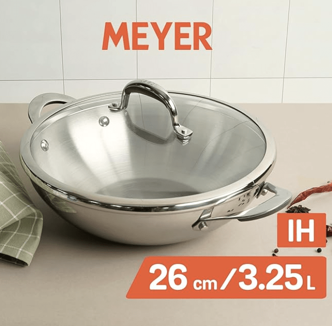 मेयर सेलेक्ट निकल-मुक्त स्टेनलेस स्टील कढ़ाई, कांच के ढक्कन वाली कढ़ाई | ट्रिपली बेस वाली स्टील कढ़ाई | डीप फ्राइंग के लिए स्टेनलेस स्टील कुकवेयर | गैस और इंडक्शन के अनुकूल, 26 सेमी/ 3.25 लीटर, सिल्वर