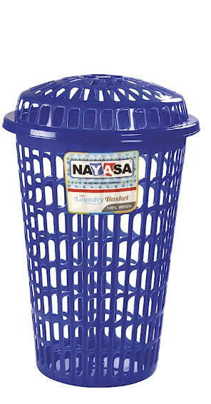 नयासा गोल प्लास्टिक लॉन्ड्री बास्केट 60 लीटर 46.7 cmx46.7 cmx71.7 cm|नीला