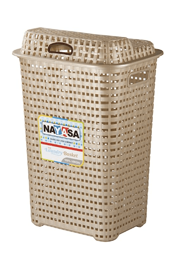 नयासा स्क्वायर प्लास्टिक लॉन्ड्री बास्केट 49 लीटर 41.7 cmx33.5 cmx62.5 cm|बेज