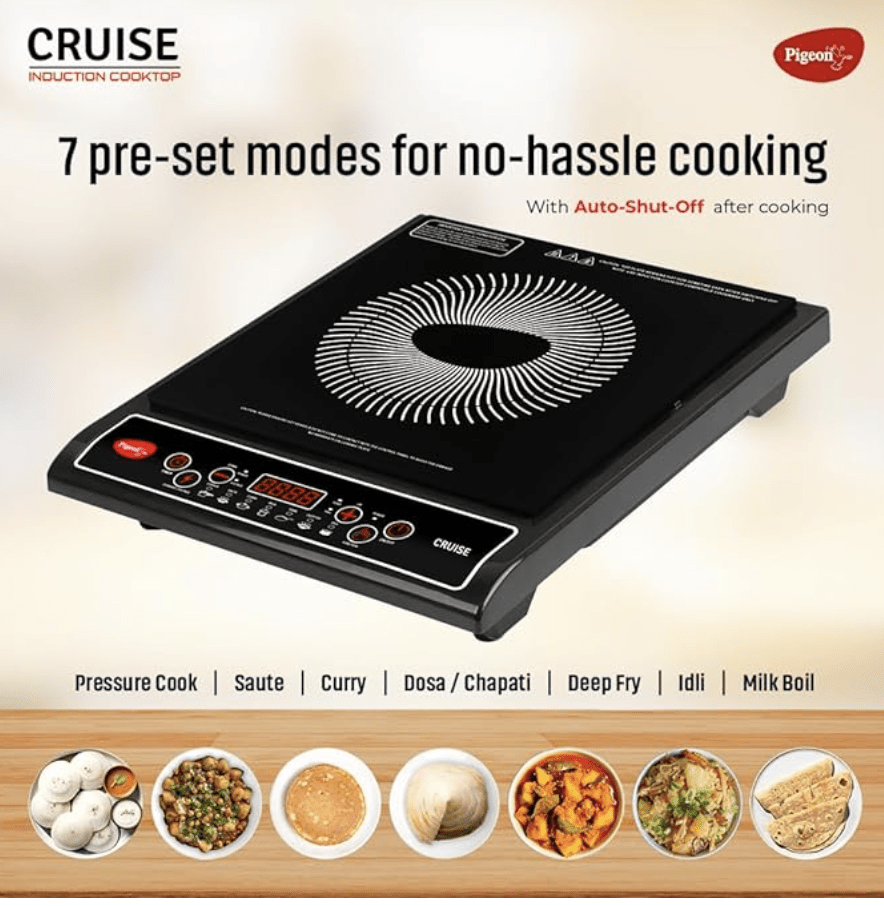 पिजन इंडक्शन कुकटॉप आपके रसोईघर के लिए सबसे अच्छा विकल्प है क्योंकि यह अत्यधिक गर्मी और बिजली की बर्बादी को रोकने के लिए स्वचालित रूप से बंद हो जाता है। |