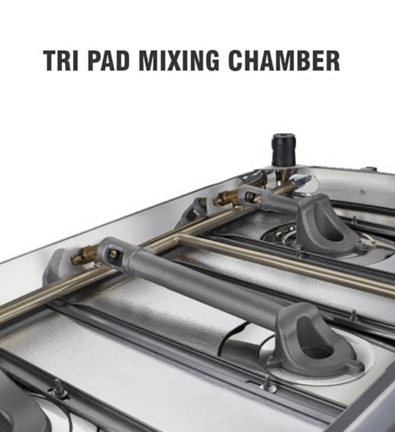 त्रि पैड मिश्रण कक्ष:पहली बार, उच्च-गुणवत्ता वाले एल्युमीनियम सामग्री से बनी एक मिक्सिंग ट्यूब गैस स्टोव पर मजबूती से लगी हुई है। यह विशेषता बेहतर दक्षता और उत्तम लौ के लिए हवा और गैस के सही अनुपात का मिश्रण प्रदान करती है। |