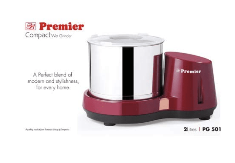 प्रीमियर प्लास्टिक कॉम्पैक्ट वेट ग्राइंडर (Pg - 501) 2Ltr 230V मेरुन कलर - कोड-03909