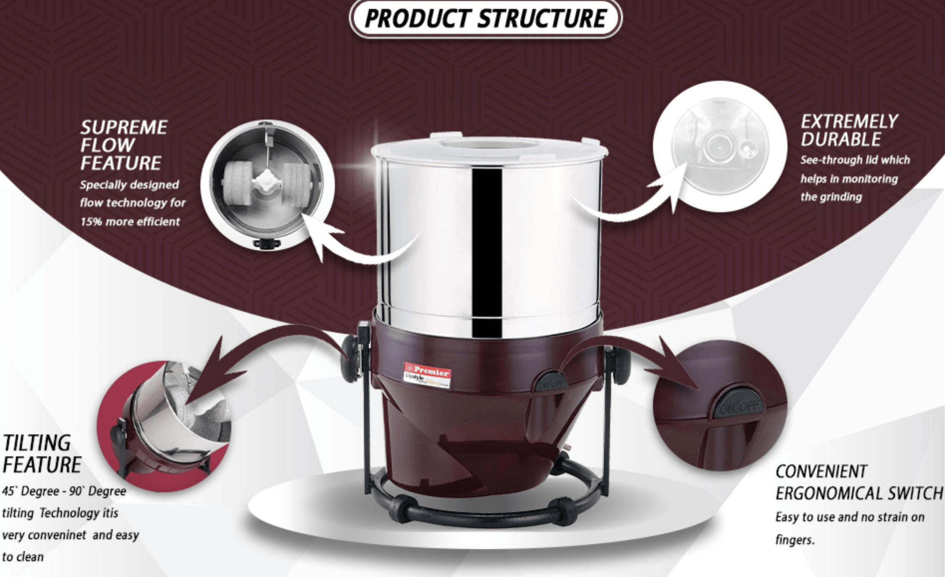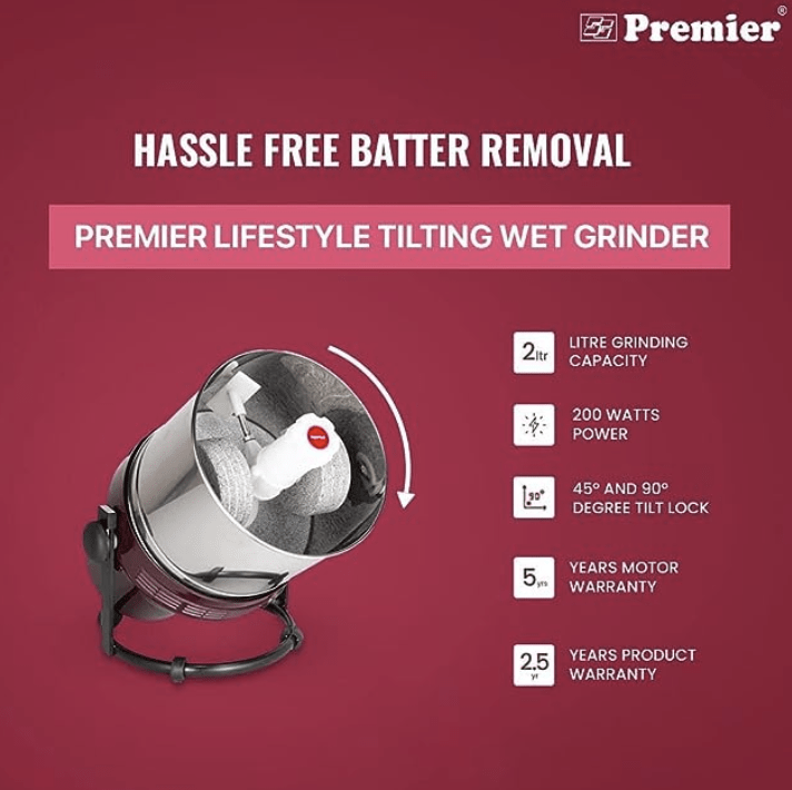 प्रीमियर लाइफस्टाइल टिल्टिंग वेट ग्राइंडर 200W PG 502