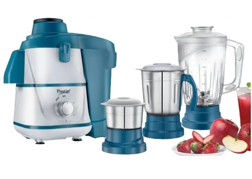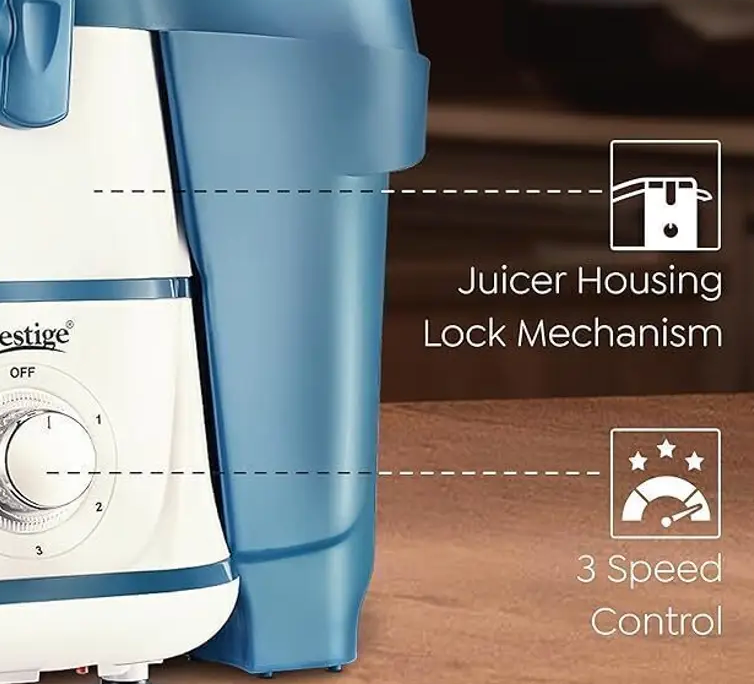 प्रेस्टीज 3 जार जेएमजी, डिटैचेबल पल्प कलेक्टर और डबल लॉक सिस्टम के साथ, 500 वाट का जूसर मिक्सर ग्राइंडर (ब्रीज | 3 जार | नीला, सफेद)