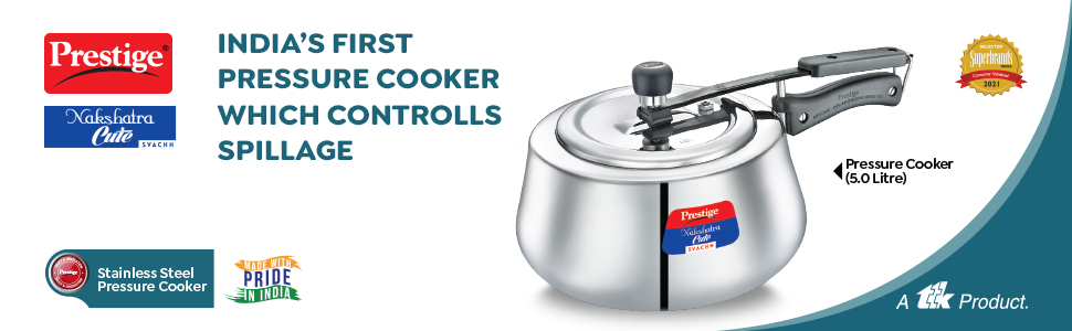 Prestige 5 Litre Stainless Steel Nakshatra Cute Svachh Pressure Cooker|Deep Inner lid for spillage control|Induction compatible|3 layers sandwich bottom|Heavy gauge body|5 years warranty|ISI Certified