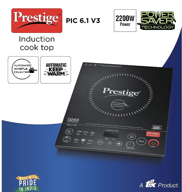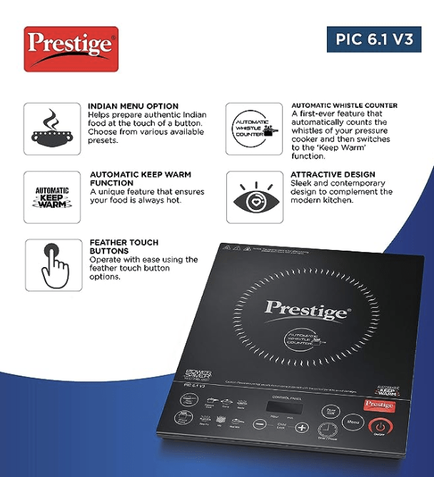 प्रेस्टीज PIC 6.1 V3 PIC 2200 वॉट इंडक्शन कुकटॉप | काला | स्वचालित सीटी काउंटर | फेदर टच बटन | गर्म रखने का फंक्शन | डुअल हीट सेंसर