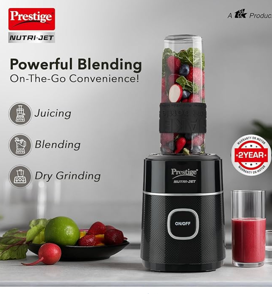 प्रेस्टीज न्यूट्री-जेट 450 वाट जूसर मिक्सर ग्राइंडर (450 वाट मोटर | 2 जार | काला)