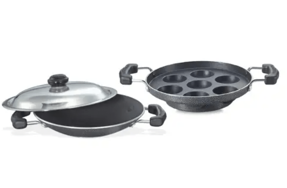 प्रेस्टीज ओमेगा सेलेक्ट प्लस नॉन-स्टिक कोटेड अप्पाचेट्टी और पनियारक्कल कॉम्बो 20 सेमी प्रत्येक, (काला)
