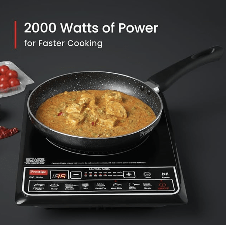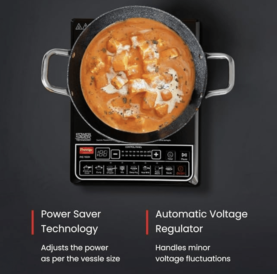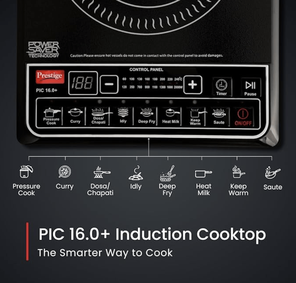 प्रेस्टीज पीआईसी 16.0 प्लस 2000 वॉट इंडक्शन कुकटॉप|भारतीय मेनू विकल्प|स्वचालित पावर और तापमान समायोजन|कीटों से सुरक्षा|1 साल की वारंटी|काला