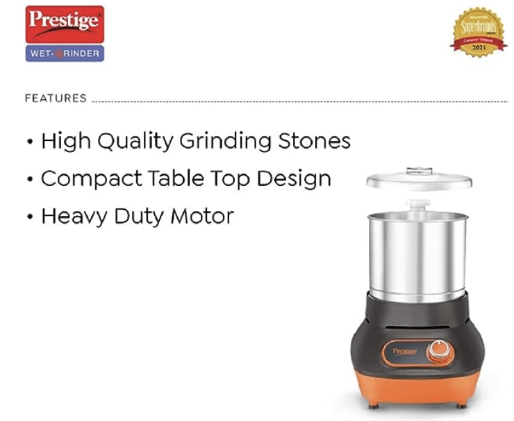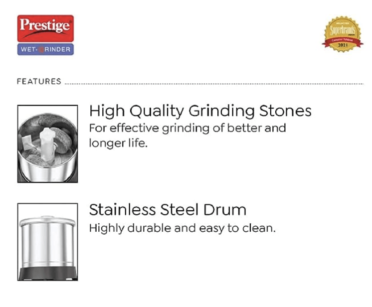प्रेस्टीज वर्टिकल PVG वेट ग्राइंडर स्टेनलेस स्टील ड्रम के साथ (1.5 लीटर)