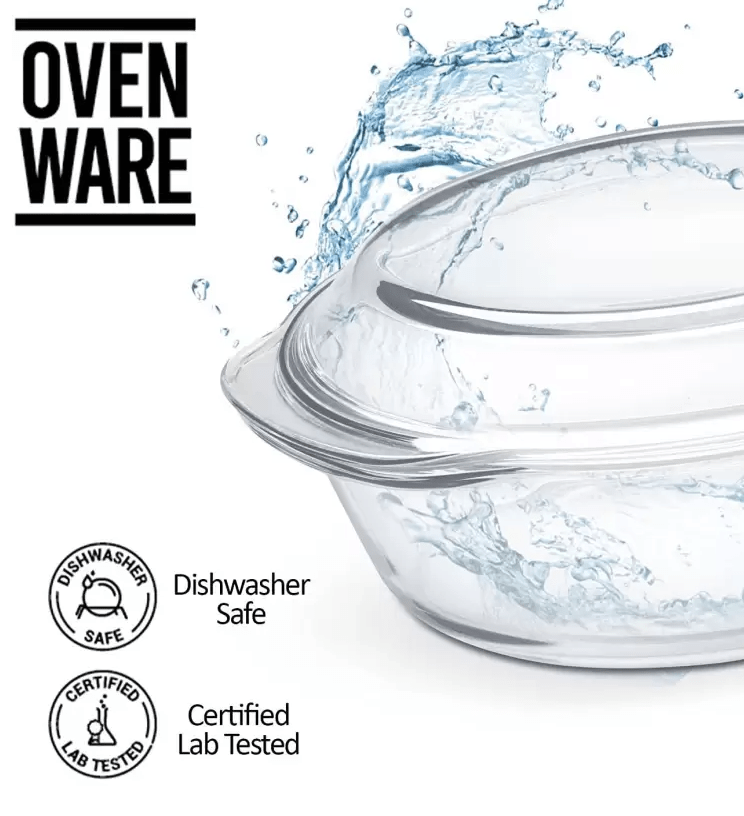 ROXX ओवन और माइक्रोवेव सुरक्षित सर्विंग बाउल ग्लास फ्लैट ढक्कन के साथ पारदर्शी 0.7L + 1.0L 2 कुक और सर्व कैसरोल सेट का पैक (700 मिली, 1000 मिली)