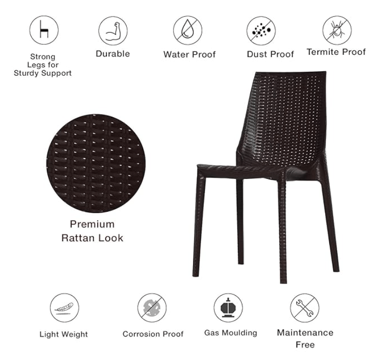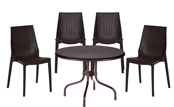सुप्रीम 4 सीटर कुर्सियाँ और मेज (प्लास्टिक, भूरा) (लुमिनाचेरीग्लोबसब्राउन5)