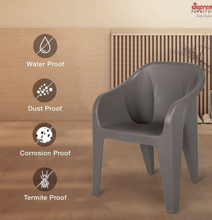 घर और ऑफिस के लिए सुप्रीम फ़्यूचरा प्लास्टिक कुर्सियाँ (4 का सेट, शैम्पेन)