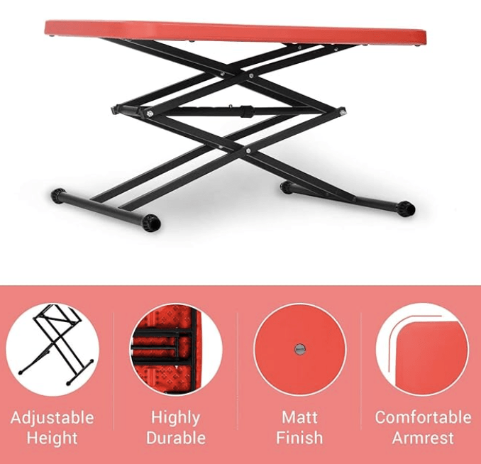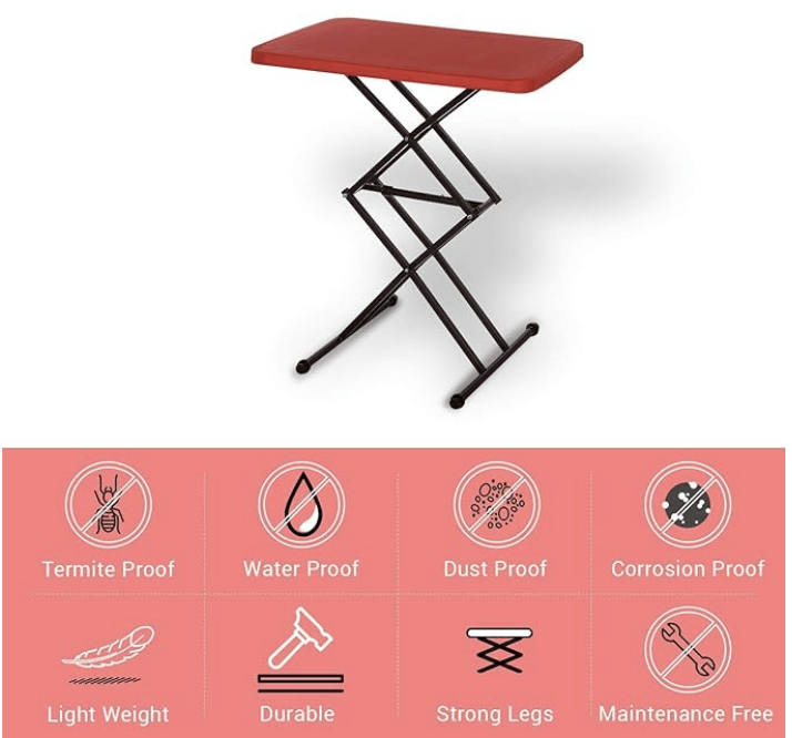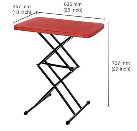 घर से काम करने, अध्ययन, भोजन और बाहर के लिए सुप्रीम सिज़र ऊंचाई-समायोज्य बहुउद्देश्यीय प्लास्टिक टेबल (लाल, फोल्डिंग टेबल, आयताकार)