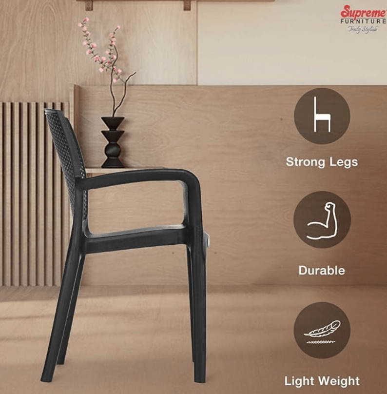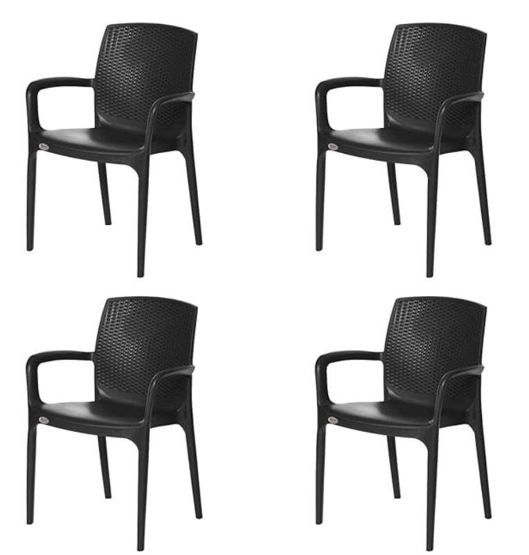 सुप्रीम टेक्सास प्लास्टिक चेयर (काला, 4 का सेट)